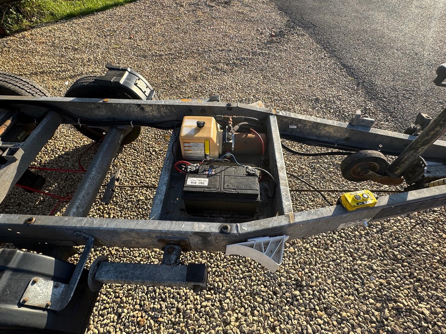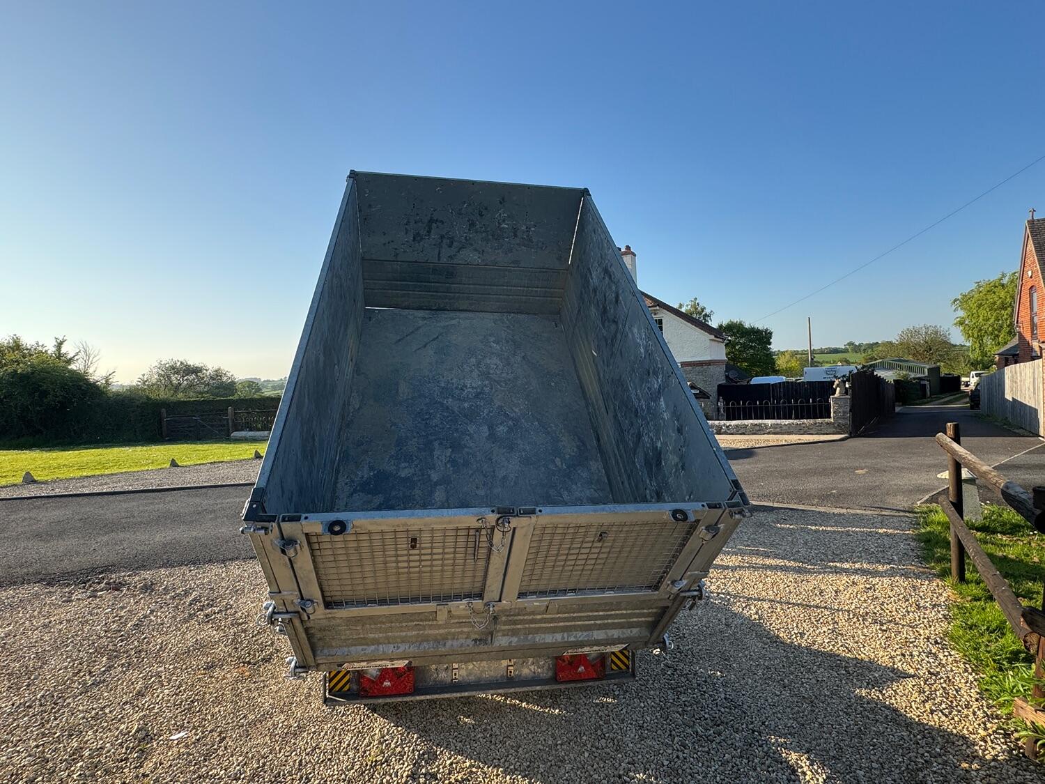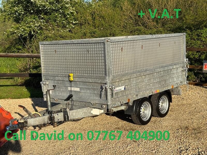 Indespention caged electric/Manual tipping trailer, four wheel breaking led 13 pin lights , regularly maintained, internal dimensions 8ft 5 by 5ft, 1922 kg payload.